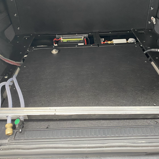 Things are now getting close to done ahead of Nifty’s first proper outing with Atlas Overland in Northumbria the week after next. All the underfloor systems are in and working. The water tank, pump and pure water filter system is in and leak free. The inlets outlets and breather all exiting nicely to the rear and the WEMA water gauge and sender read true. The Viair onboard compressed air system is working beautifully (thanks MattSavage4x4). Switch panel is wired, fused and bolted into the left rear “hook” bolt hole. Finally the Frontrunner twin slide system is in and bolted down through the load space tiedown bolt holes. Needed some help from Nifty’s nimble helper to complete that job! So looking good so far!